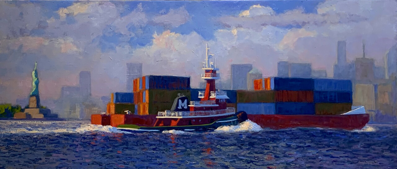 painting entitled Liberty, Tug, Skyline by Joseph Peller.