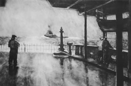 Friday Night,black-and-white etching